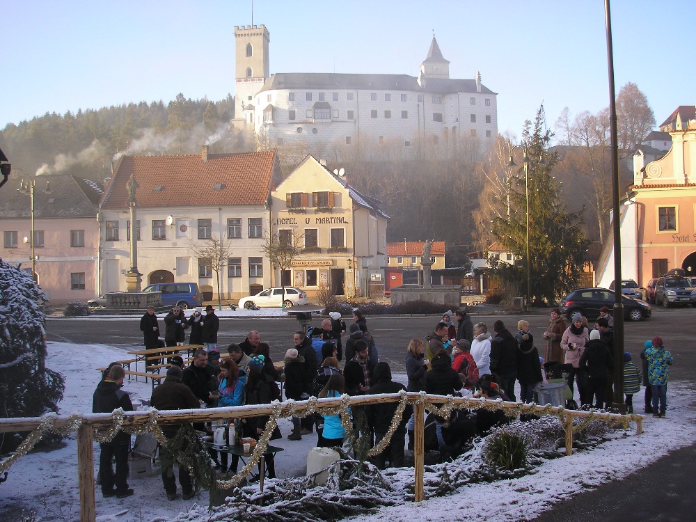 Čekání na rozverný večer silvestrovský jsme zahájili příjemným setkáním občanů na náměstí v Rožmberku nad Vltavou. Ke svařáku a punči nám zahráli někteří členové skupiny Pajzl band. Děkujeme Róze, Romanovi a Lukášovi za organizaci pěkného odpoledne.